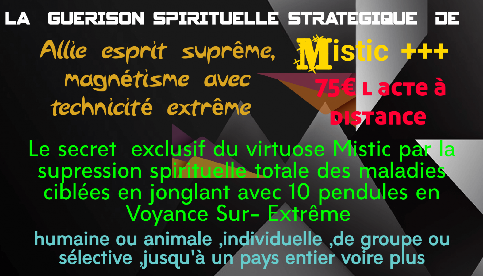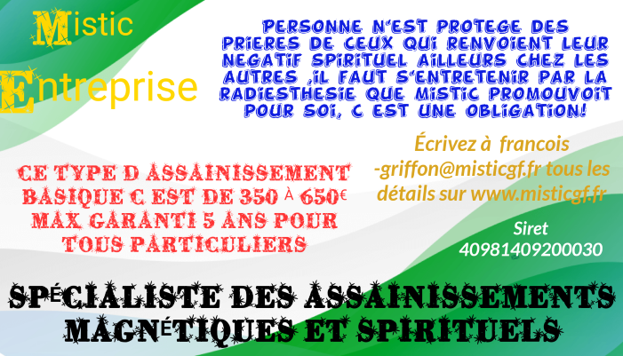 Par manque d'intérêt général pendant 25 ans surtout par boycott , resté tous ce temps par devoir de présence et donc n'ayant plus envie de servir des gens qui le nuisent Mistic a fermé son site de référence www.misticgf.fr au Public , pour pouvoir être accepté pour ses services exclusifs , vous devez consulter en radiesthésie et voyance ici en achetant des crédits ou par paiement sur facture après consultation , ou en réservant une consultation à distance ou à domicile , aurez le code d'accés au contenu du site lors de la consultation - des services simples sont ouverts a tous , les plus engageants comme les assainissements demandent une inscription qui pourrait être refusée par un profil litigieux avec Mistic ou sordide de spirituel -